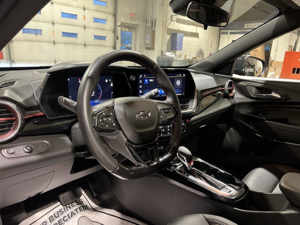 6 mo 6,000 mile limited warranty on all Car Bravo certified preowned vehicles Discover the perfect blend of style, efficiency, and technology with this lightly used 2024 Chevrolet Trax, now available at Cappellino Chevrolet under stock number P2657. This eye-catching compact SUV in stunning Crimson Metallic with Jet Black and Red accents is ready to turn heads and elevate your driving experience.With only 12,101 miles on the odometer, this Trax is practically new and offers incredible value. The efficient 1.2L Turbo DOHC engine with Variable Valve Timing delivers a peppy 137 horsepower and 162 lb-ft of torque, perfect for zipping around town or cruising on the highway. Paired with a smooth 6-speed automatic transmission, this front-wheel-drive Trax offers a perfect balance of performance and fuel efficiency.Step inside, and you'll be greeted by a modern, tech-forward interior. The 11 diagonal HD color touchscreen is your command center, offering seamless integration with wireless Apple CarPlay and Android Auto. Stay connected on the go with the Wi-Fi Hotspot capability and enjoy your favorite tunes through the 6-speaker audio system.Comfort and convenience are at the forefront with heated front seats, perfect for those chilly mornings. The Evotex seat trim provides a premium look and feel, while the 60/40 split-folding rear seat offers versatile cargo options. The flat-bottom steering wheel adds a sporty touch and includes mounted controls for audio, cruise control, and phone interface.Safety is paramount in the 2024 Trax, featuring the comprehensive Chevy Safety Assist package. This includes Automatic Emergency Braking, Front Pedestrian Braking, Lane Keep Assist with Lane Departure Warning, Following Distance Indicator, Forward Collision Alert, and IntelliBeam auto high beam control. Additional safety features like Lane Change Alert with Side Blind Zone Alert, Rear Cross Traffic Alert, and Rear Park Assist provide extra peace of mind on the road.The RS trim level adds distinctive styling elements, including Black front and rear bowties, a Black grille insert, and 19 Black-painted machined aluminum wheels. The power sliding glass sunroof with manual shade lets you enjoy open-air driving at the touch of a button.Additional features that set this Trax apart include Adaptive Cruise Control for stress-free highway driving, wireless charging for compatible devices, and all-weather floor liners to protect your investment. The Teen Driver feature allows you to set parameters for younger drivers, promoting safe driving habits.With its CARFAX-verified one-owner status and only minor reported damage, this 2024 Chevrolet Trax offers exceptional value and peace of mind. Don't miss your chance to own this feature-packed, stylish, and efficient compact SUV. Visit Cappellino Chevrolet today and experience the 2024 Trax for yourself! All pricing and details provided are believed to be accurate, but we do not warrant or guarantee such accuracy. The prices shown above may vary from region to region, as will incentives, and are subject to change. New vehicles offered may be eligible for manufacturer incentives which may change at any time and are subject to incentive qualification criteria and requirements, and which may be contingent upon manufacturer finance company approval. Manufacturer incentive data and vehicle features information is provided by third parties and believed to be accurate as of the time of publication. Vehicle information is based upon standard equipment and may vary from vehicle to vehicle. Please contact the dealership.