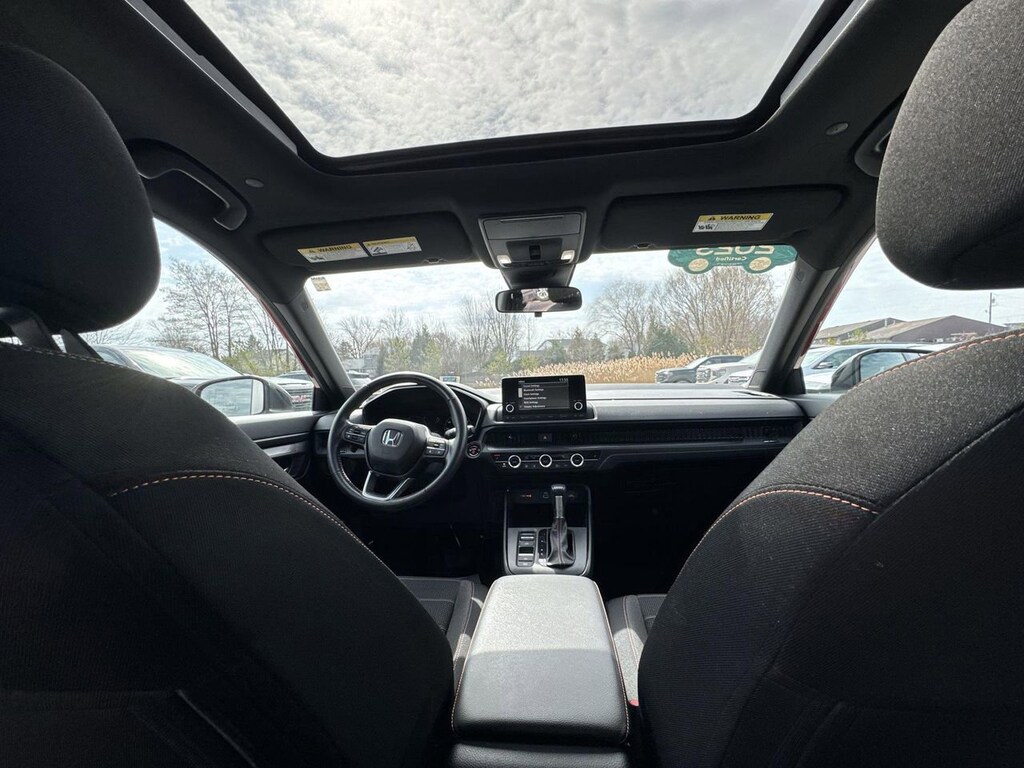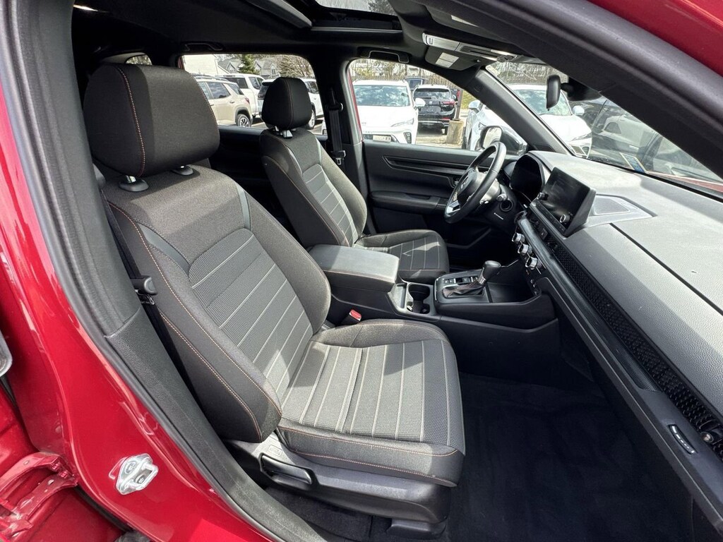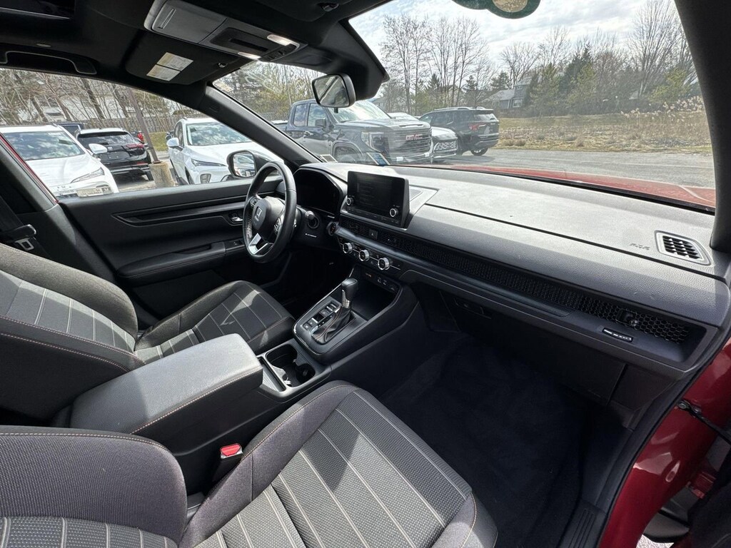 This CR-V Hybrid is packed with desirable features that make it stand out in a competitive market. The power sunroof adds an open, airy feel to the cabin, while the dual-zone automatic climate control ensures comfort for all passengers. The adaptive cruise control with low-speed follow is perfect for long trips or navigating through traffic.
